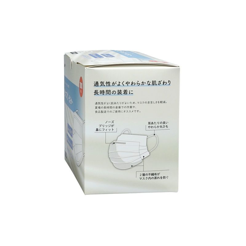 | 商品説明 | 肌触りのよい不織布マスクです。 顔のラインに沿って装着できるよう、鼻部分に樹脂製ノーズブリッジが入っています。 通気性がよいので、長時間装着しても息苦しさを軽減します。 長時間の倉庫作業などにおすすめです。 マスクの表裏がわかりやすいよう、刻印が入っています。 ※マスク本体の向かって右下部に「OUT SIDE」の刻印があるほうが外側。 |