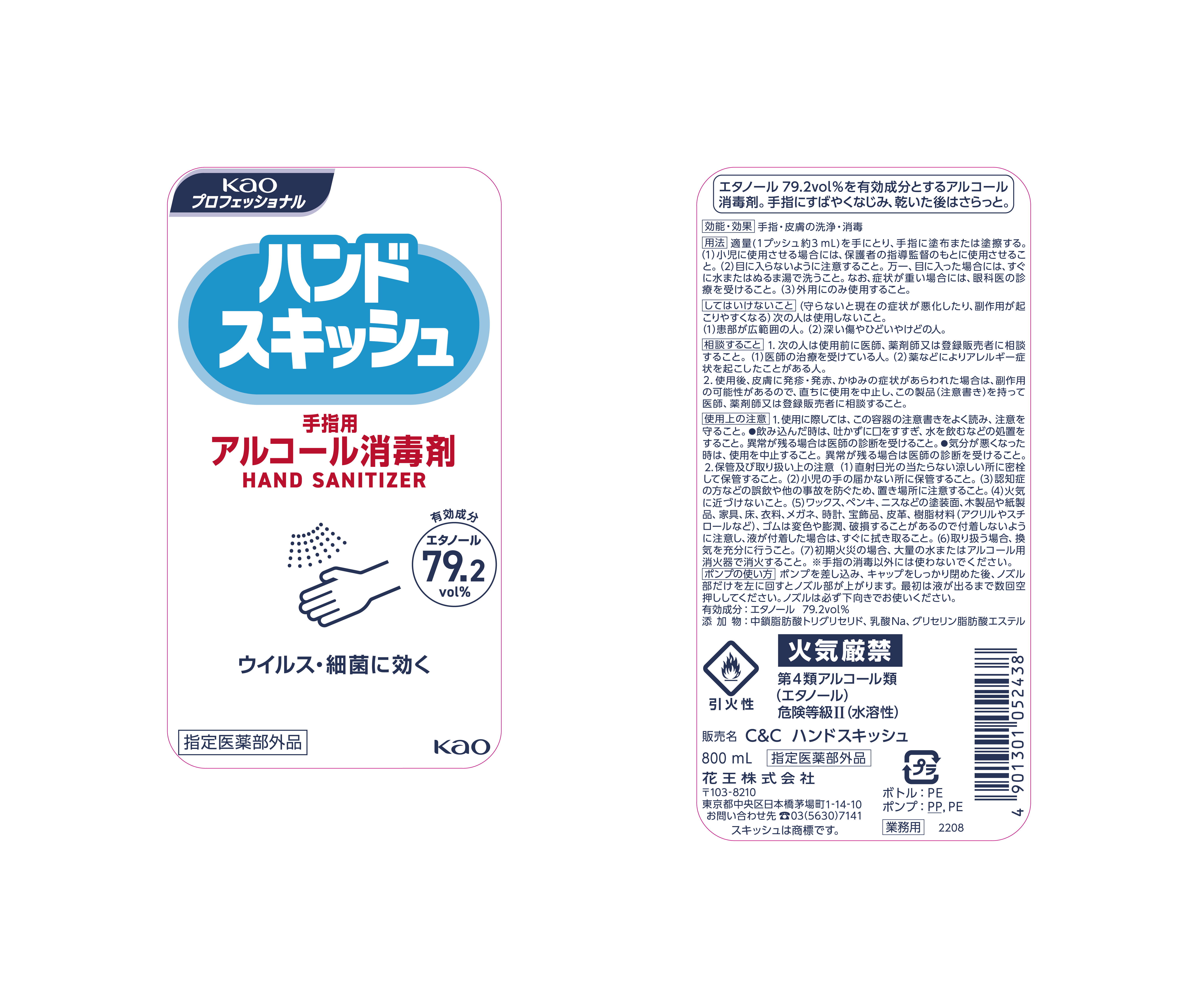 花王 ハンドスキッシュ アルコール消毒剤 800ml 付替え ポンプ付き